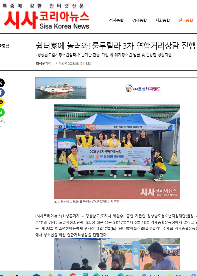- 경상남도 청소년 유관기관 연합으로 청소년 거리상담 지원활동 실시